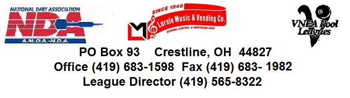 | 3 | A | DART AHOLICS Eagles NL 2869 | MIKE BAKER 29 W FIR St New London, OH 44851 | 419-577-6170 / 419-577-6170 419-929-2663 |